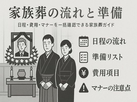 2025/08/24「家族葬って、どんな流れで、どれくらい費用がかかるの?」 「参列者の範囲やマナーもよく分からない…」とお悩みではありませんか。 近年、全国の葬儀のうち家族... -