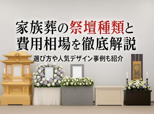 2025/10/06「家族葬でどんな祭壇を選べばよいのか分からない」「費用はどのくらいかかる?」「宗教や家族の気持ちに合った祭壇が知りたい」――そんな悩みを抱えていませんか。 ...