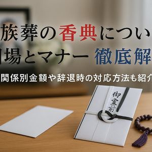 2025/10/18「家族葬の香典、何を基準に準備すればよいのか迷っていませんか?」近年、家族葬は全体の葬儀の約3割以上を占めるほど増加しており、従来の一般葬とは異なるマナーや香... -