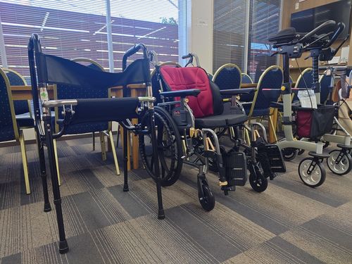 また、式場では福祉用具の展示会も行い、介護保険でしようできる用具を実際に手に取って体験いただきました。