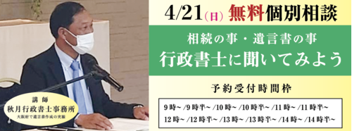 遺言書の作成や、相続の事だけではなく、終活全般の法律のことに関して、不安に思われていることを秋月行政書士に無料相談できるイベントをおこないました。