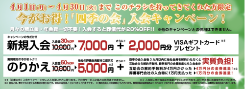 こちらの記事かチラシを入会の際にご提示いただければキャンペーンを適用させていただきますのでこれを機会にご検討ください。