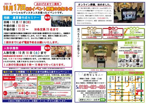 オープンから3年間で300件以上のお葬式のご依頼をいただき、わずかながら皆様のお役にたてればとの思いで、今年も相続・遺言書作成セミナー・人形供養祭を開催いたします!