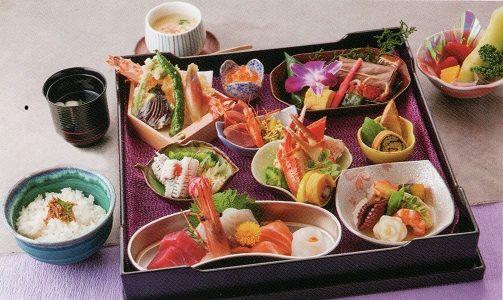 前菜・お造り・焚合せ・焼物・酢物・小鉢・天麩羅・白飯・吸物・フルーツ